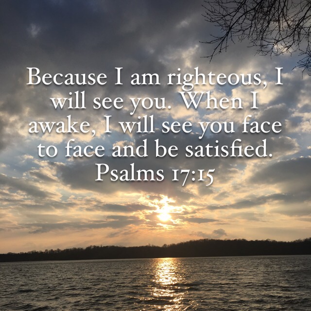 We are made righteous through Christ, and because of that we have the promise that He will satisfy us. We don’t believe in someone or something that can’t be known. He promises to meet us face to face! We know Him through His word, creation, and through the quiet whispers to our hearts. It is a relationship with God and not just a formality with a “religious” deity. He wants to know your heart and wants you to know Him!